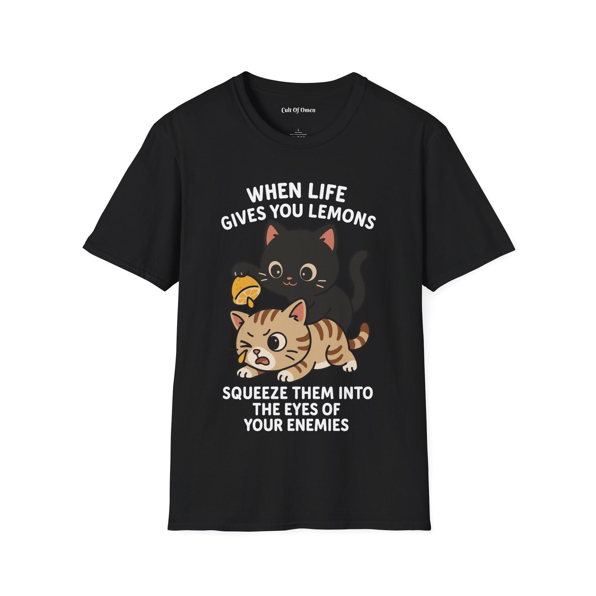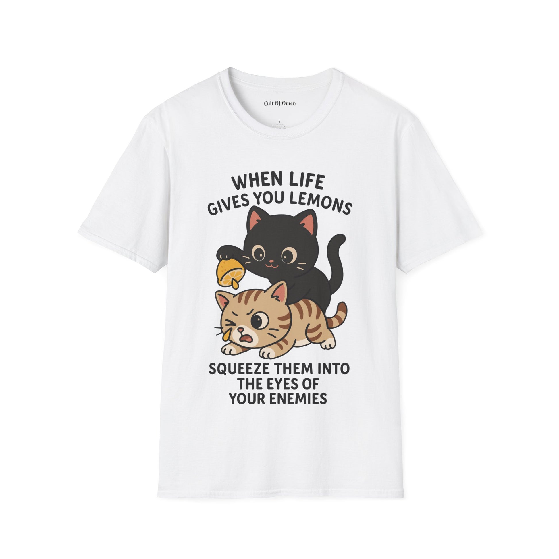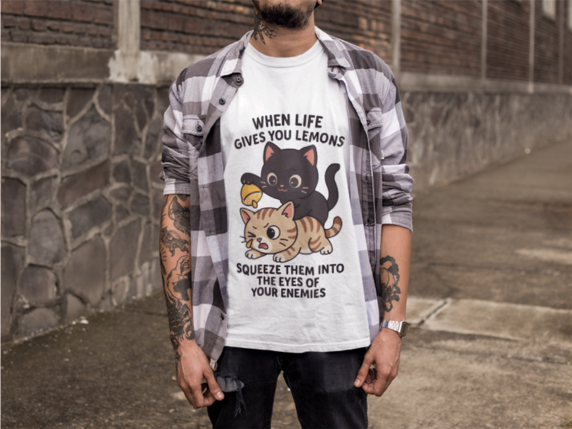 This tee features our resident chaos cat dishing out citrus justice — because sometimes, the best revenge is pulp-based. With a bold design and just the right dose of mischief, it’s perfect for those who handle problems with flair, fury, and fruit.